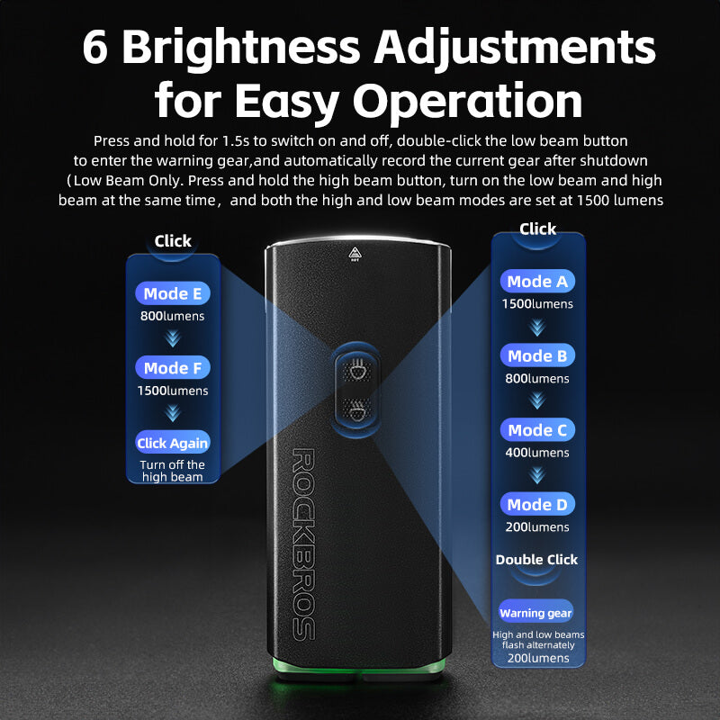 The intelligent heat and voltage control prevents overheating and battery drain, keeping your bicycle headlight safe and long-lasting even under heavy use. -