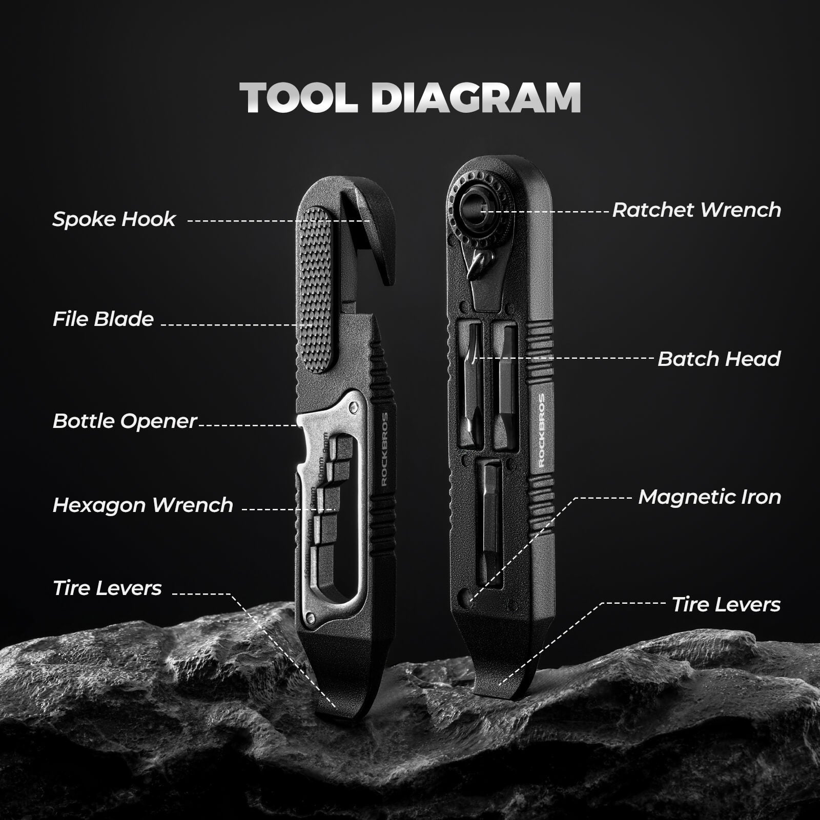 This ROCKBROS Compact Bike Tool Set is a true space-saving essential, measuring only 5.1 × 1 × 0.8 inches. Its innovative clip system securely locks two tools together, while the magnetic ratchet wrench keeps all parts in place for smooth, efficient repairs. -