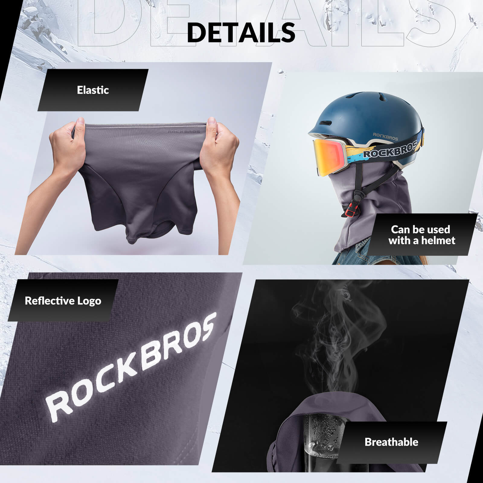 The ROCKBROS balaclava ski mask is lined with thermal fleece that locks in heat, keeping your head, face, and neck warm even in freezing conditions. -