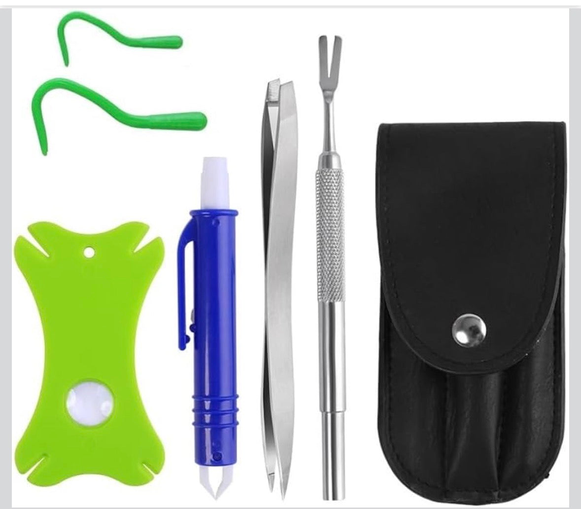- 6-in-1 set with Stainless Steel Tick Removal Tweezers, Tick Card, Hooks & Leather Case. Easily Remove Ticks for Family & Pets!